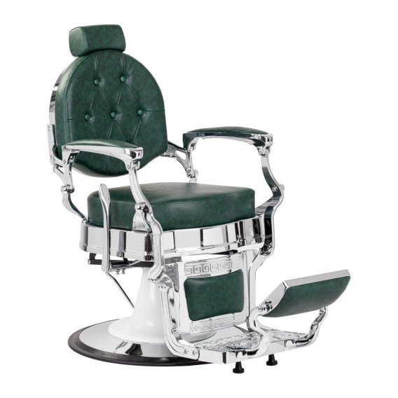 Gabbiano fotel barberski President Zielony z chromowaną ramą