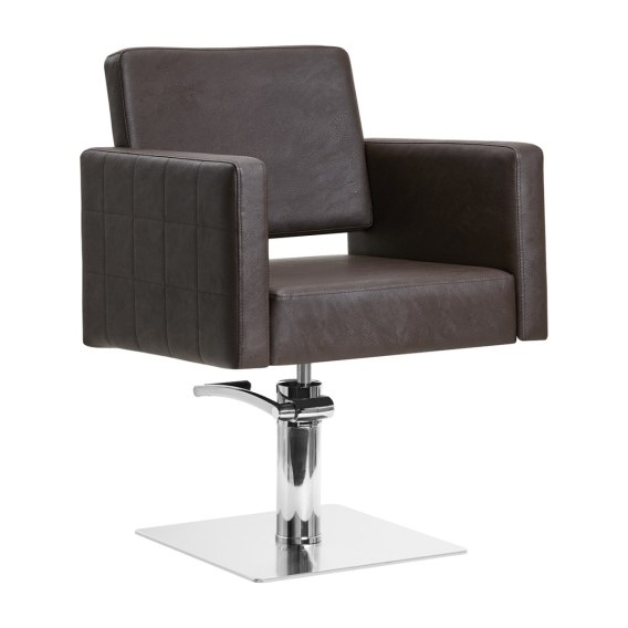 Wygodny fotel wypełniony jest trwałą i odporną na odkształcenia pianką, co zapewnia wieloletnie użytkowanie, wysoki komfort oraz wygodę nawet podczas wielogodzinnych zabiegów. Obicie wykonane jest z przyjemnej w dotyku skóry syntetycznej, a zastosowanie takiego materiału sprawia, że sprzęt jest odporny na wilgoć, wytrzymały oraz bardzo łatwy w czyszczeniu. Pokrycie w odcieniach brązu wraz z ciekawymi wizualnie elementami nadają mu wyjątkowego charakteru. Sprzęt wyróżnia elegancki design, który sprawia, że fotel będzie doskonale prezentować się w wielu wnętrzach salonów fryzjerskich.