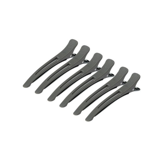 Klamry klipsy fryzjerskie do włosów E-12B 6 szt. 11,5 cm szare