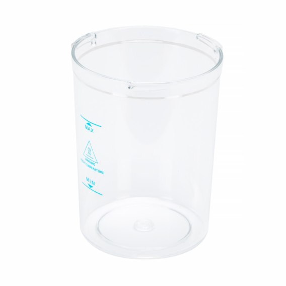 Wymienny pojemnik wykonany z transparentnego tworzywa sztucznego, odpornego na wysokie temperatury. Szklanka posiada oznaczenia minimalnego i maksymalnego poziomu wody, co ułatwia bezpieczne użytkowanie. Lekka konstrukcja i gładka powierzchnia zapewniają łatwość czyszczenia. Wymienny pojemnik na wodę o średnicy +/- 11 cm i zaznaczonej pojemności maksymalnej 750 ml, odpowiedni do wapozonów Giovanni D-20 i D-21 z lampą lupą.